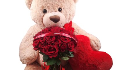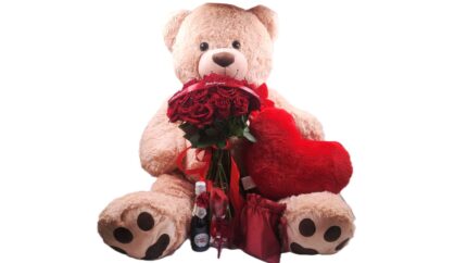 Το απόλυτο δώρο αγάπης που τα λέει όλα μόνο του. Κόκκινα τριαντάφυλλα, κόκκινη καεδιά, λούτρινος υπερμεγέθης αρκούδος ,σοκολατάκια και αφρώδη οίνο.