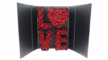 ''LOVE'' ένα υπέροχο δώρο αγάπης ....που τα λέει όλα μόνο του. Μία υπέροχη κασετίνα μαύρη που εσωτερικά σχηματίζει το μήνυμα ''love'' με κατακκόκινα αρωματικά soap roses