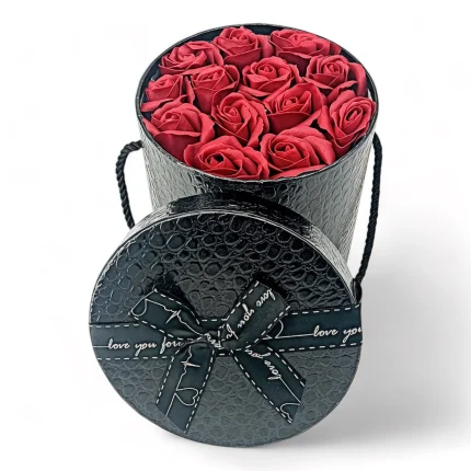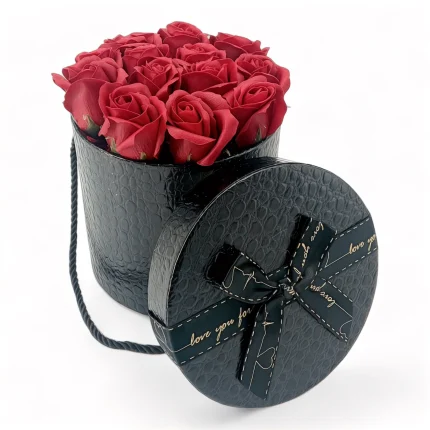 Μέσα σε μια μαύρη καπελιέρα κρυμμένο ένα κατακκόκινο τριαντάφυλλο forever που διατηρείται αναλοίωτο για χρόνια. Ένα λιτό και ιδιαίτερο δώρο για να εκφράσει έντονα συναισθήματα. Παραδίδεται κλειστό.